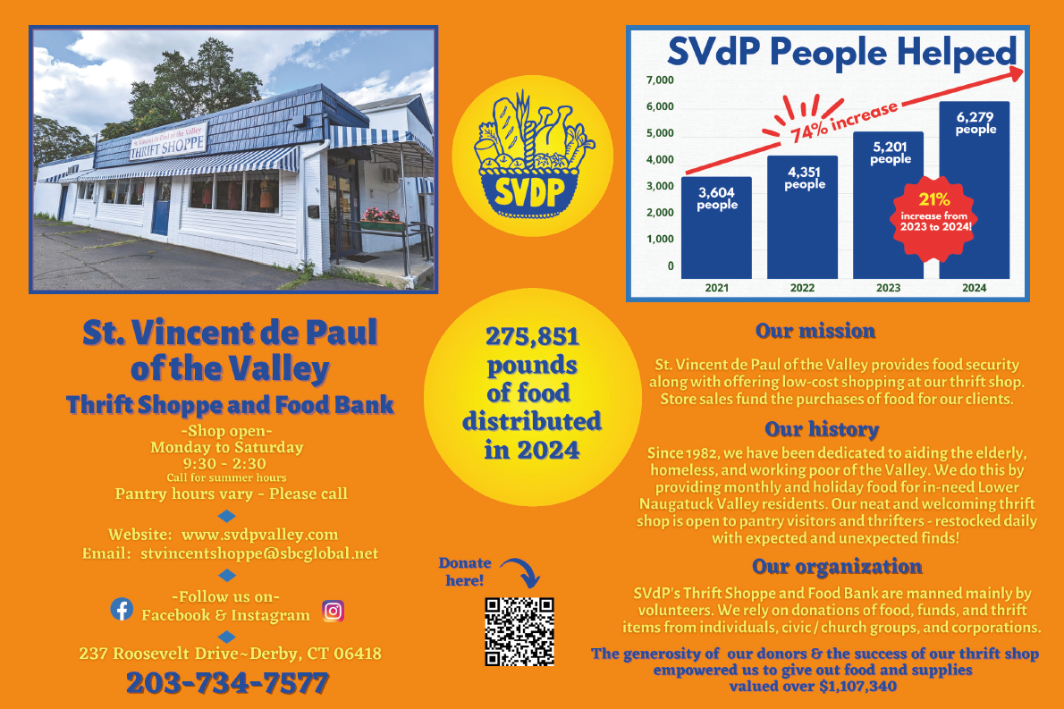 Our mission at St. Vincent de Paul of the Valley is to assist people of the Lower Naugatuck Valley with hunger and food insecurity.